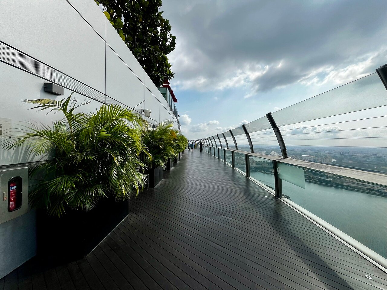 Revised Sands Skypark Observation Deck Operation Hours W.E.F 23 March 2020, Monday onwards is as follow Monday to Sunday: 10am to 10pm The ticketed, public, observation deck can host hundreds of people. Apart from taking in the stunning views, visitors will learn about the construction of the SkyPark through a complimentary audio guide, which allows visitors to hear commentaries on key commercial and historic parts of Singapore, all of which can be appreciated from this unique vantage point. Souvenirs can be purchased from the SkyPark gift shops. The SkyPark's lush, landscaped gardens are home to 250 trees and 650 plants and is a total of 12,400 square meters of space - big enough to fit three football fields! It extends to form one of the world's largest public cantilevers.